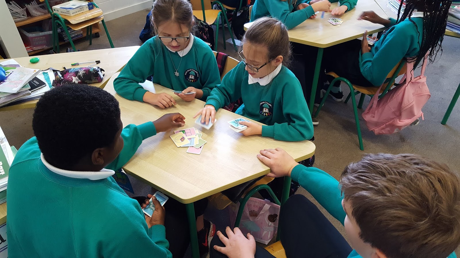 We used the laptops to play a game called Timez Attack today. This involved pupils guiding their computer character around different regions answering tables questions. This is a great help to both multiplication and division tables. It keeps track of the tables they have difficulty with and keeps presenting those until they get them right consistently.